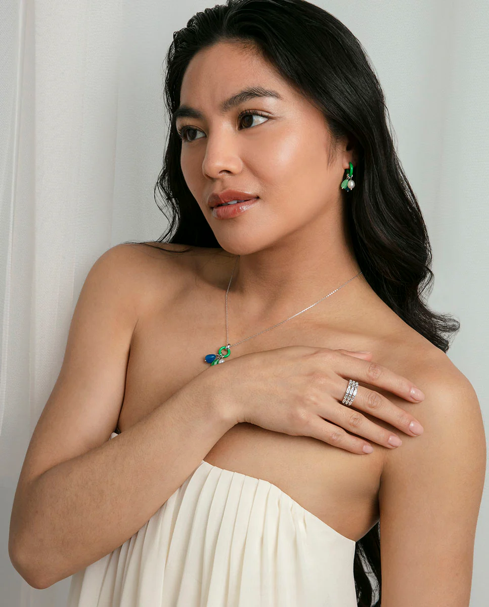 Anillo de plata de primera ley con baño de rodio, tres filas de circonitas