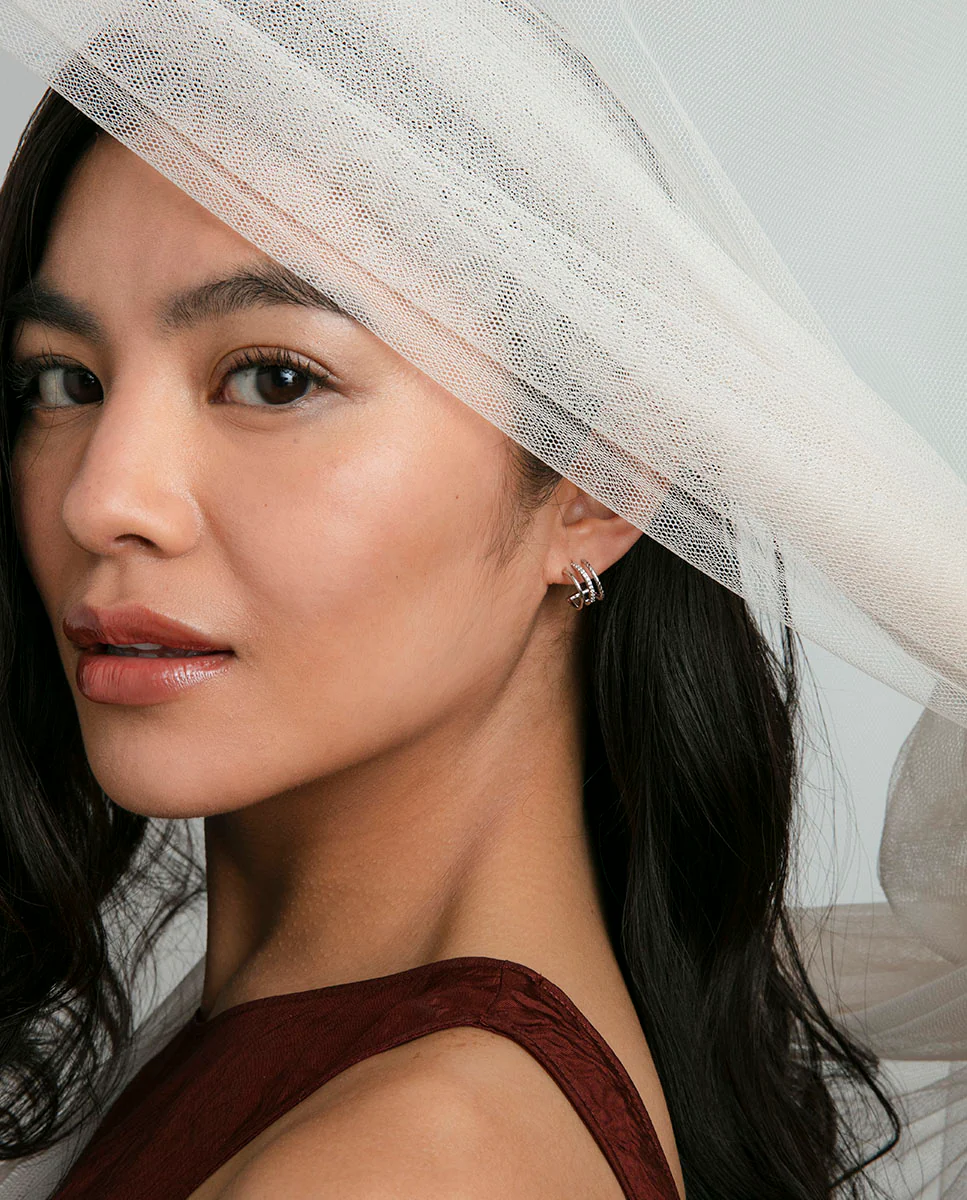 Pendientes de plata de primera ley con baño de rodio, tres aros abiertos