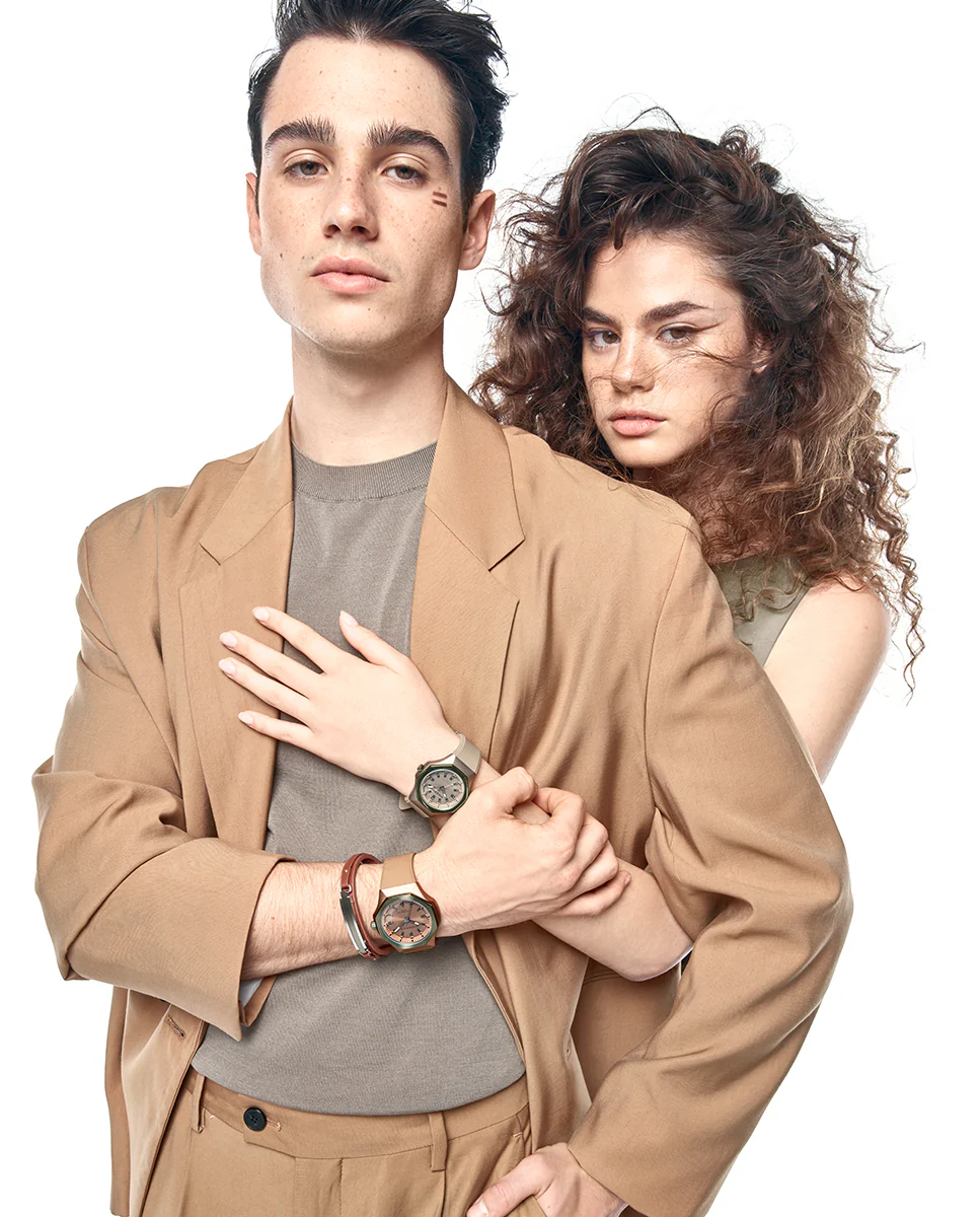 Pulsera de piel marrón, placa de acero y aluminio verde, de hombre