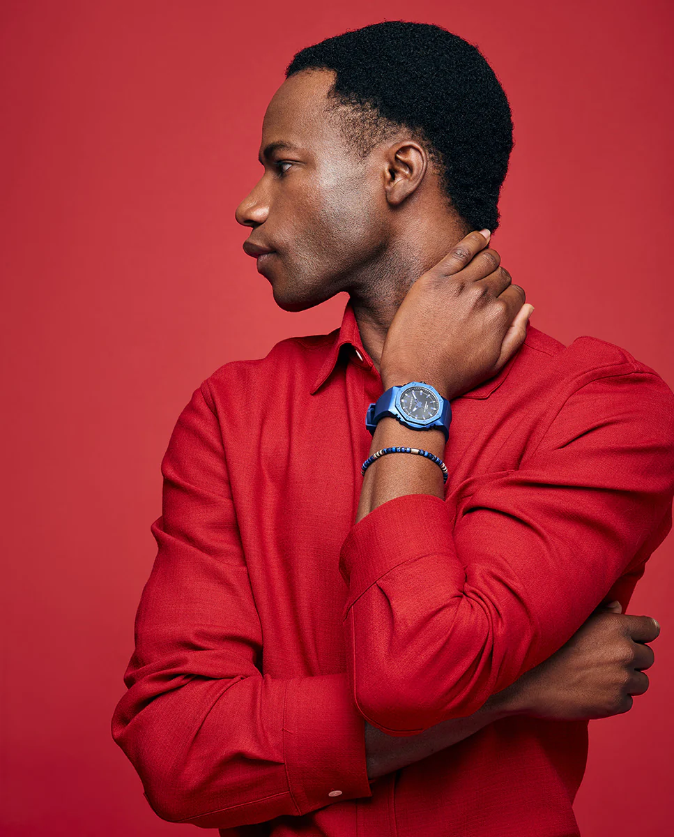 Reloj de hombre con caja de aluminio y correa de silicona azul oscuro—